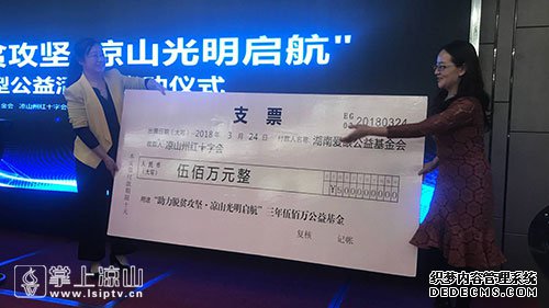 “助力脱贫攻坚、凉山光明起航”是凉山州红十字会联合湖南爱眼公益基金会、凉山州残疾人联合会、凉山爱尔眼科医院,共同发起的大型公益活动,据了解,这项公益活动计划在2018年至2020年,3年时间内由湖南爱眼公益基金捐赠500万元,每年为我州 1000名以上的白内障患者实施全免费复明手术,为800名以上的翼状胬肉患者实施免费手术治疗,为1000名以上的弱势少年儿童提 供免费医学配镜服务,启动仪式上湖南爱眼基金会代表向凉山州红十字会转授500万支票。