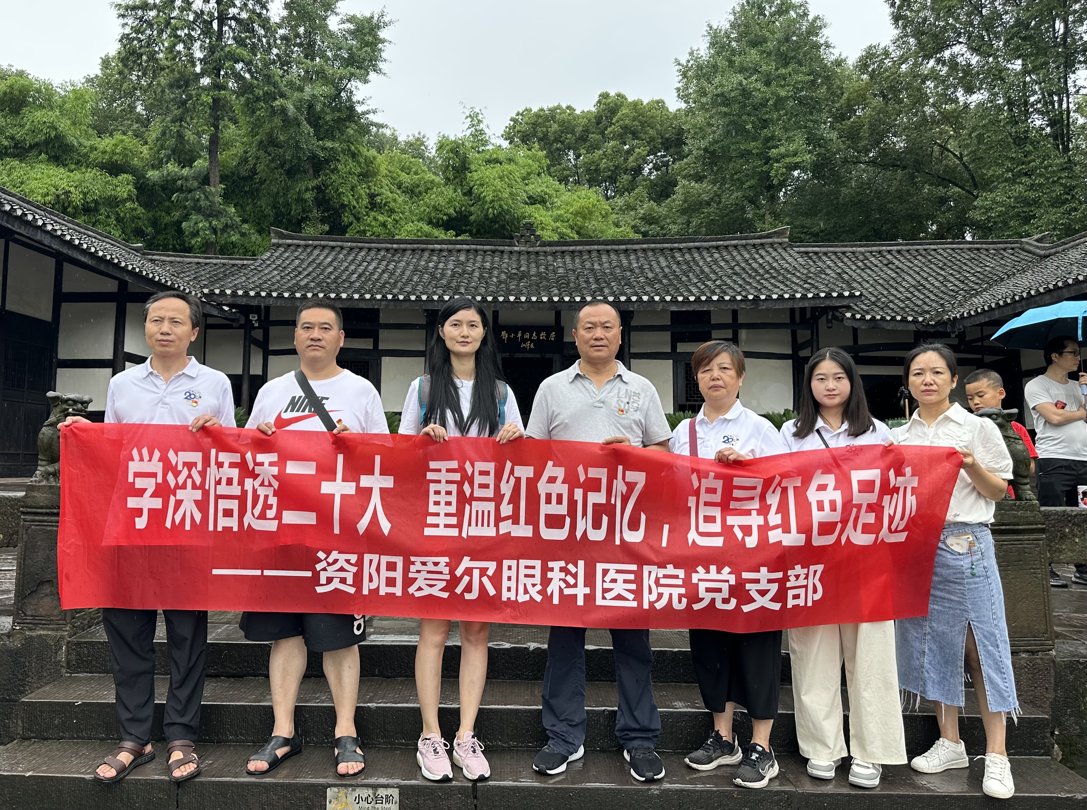 为深入学习贯彻党的二十大精神,缅怀革命先烈,传承红色基因,弘扬爱国主义精神,强化支部全体成员的历史感和时代责任感,在七一建党节,资阳爱尔眼科医院党支部共10名同志赴广安市邓小平故里,开展爱国爱党主义教育实践活动。