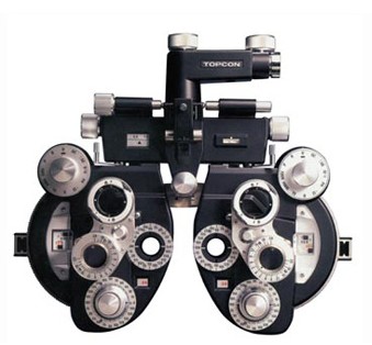 TOPCON公司的VT-10,内置多种辅助镜片,检查视功能,交叉柱镜、内置散光片与轴向旋钮连动,轴向及闪光检查。